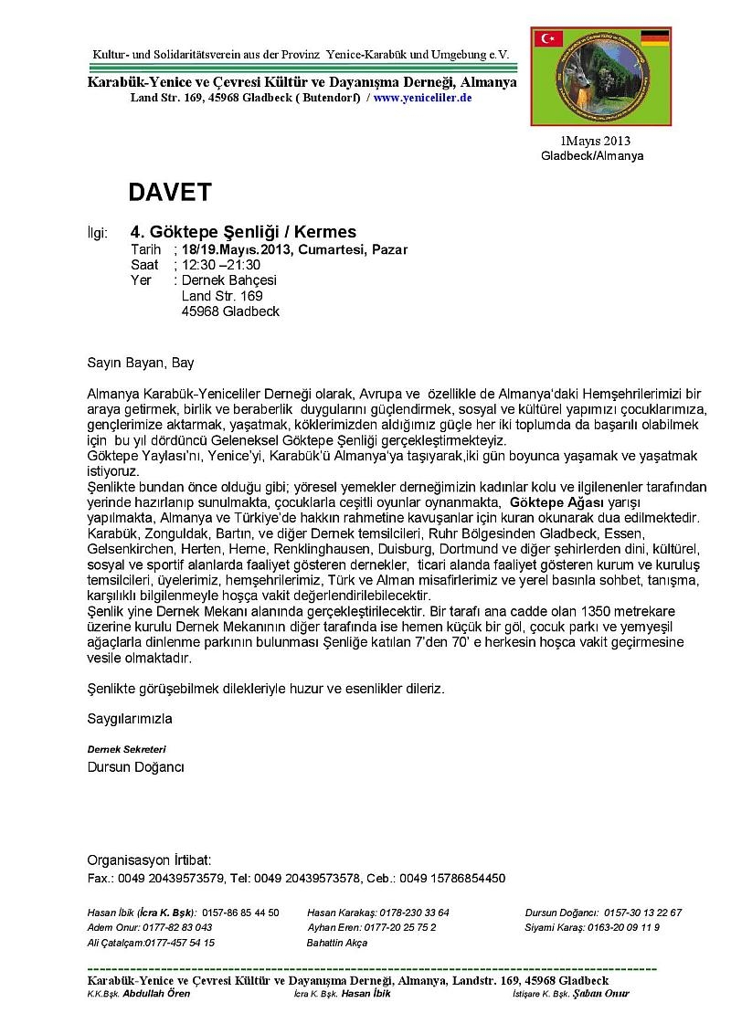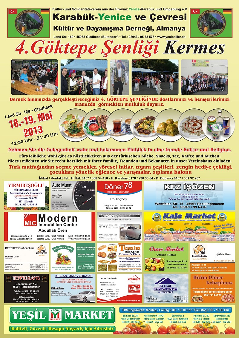 Almanya Karabük-Yenice ve Çevresi Kültür ve Dayanışma Derneği, nin 28.10.2012 pazar günü saat 12:00 -18:00 arası düzenlediği Bayram Şöleni yoğun ilgi ve katılımla gerçekleşti