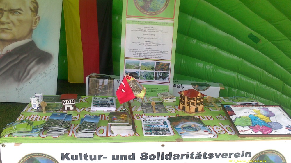 | Türkis 2012 Avrupa Kültür Festivalinde Yöremizin Tanıtımı ![]() ![]() Almanya’nın Dinslaken şehrinde 22-24 Haziran tarihleri arasında, Avrupadan yayın yapan Kanal Avrupa Televizyonun himayesinde -TÜRKİS Avrupa Kültür Festivali 2012’de derneğimiz vasıtasıyla Karabük ve ilçeleri tanıtıldı. Türkiyeden ve Avupadan birçok ses sanatcısının iştirak ettiği proğramda, değişik yörelerimizi temsil eden halkoyunu ekibleri, atasporlarımız cirit ve yağlı güreşler yapıldı. Avrupada faaliyet gösteren çok sayıda sivil toplum kuruluşunun yanı sıra hemşeri dernekleride yer alarak kendi yörelerini tanıttılar. Avrupa Karabüklüler derneği olarak kurulan çadırda, Festivale katılan binlerce Avrupalı Türk ve Avrupalılara Karabük ve çevresini bilhassa Safranbolu ve Yenice ilçeleri tanıtılmaya çalışıldı ![]() ![]() Diğer Resimler Foto Albüm sayfasına eklenmiştir (Buraya tıklayınız) www.yeniceliler.de |